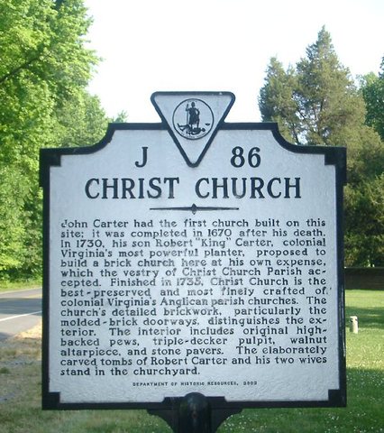 Robert's father was buried at Christ Church which he helped build at Corotoman