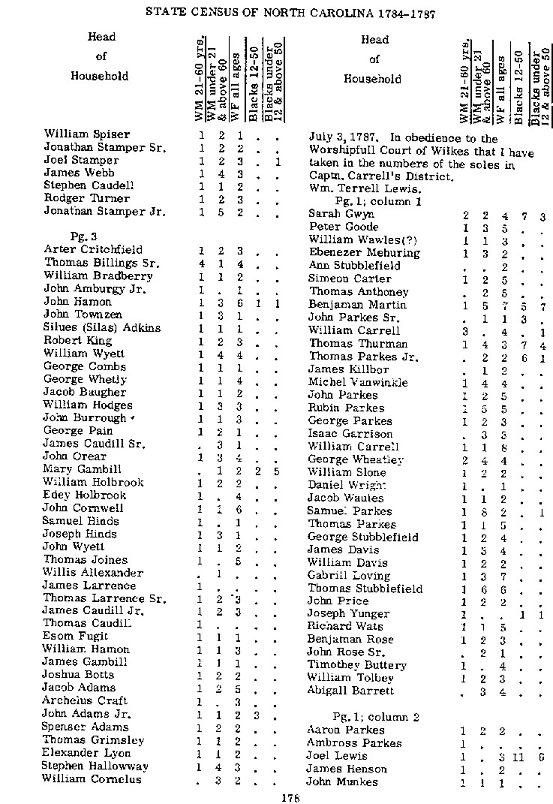 NC Census, in Capt. Carrell's District, Wm. Lewis' Company, dated Jul 3, 1787,