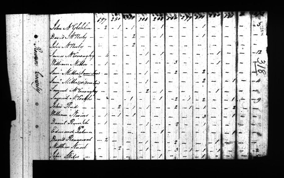 [U.S. Census 1800, Roll 33, v. 5, National Archives website, pp. 308, 318]. |