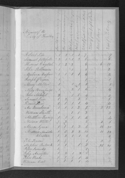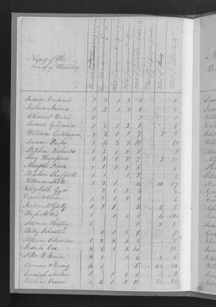 household of 5 adults: Christopher and Hannah, his wife aged 60-70, a male aged 20-30, and 2 females aged 30-40, and no slaves. [familysearch.org, website]. |