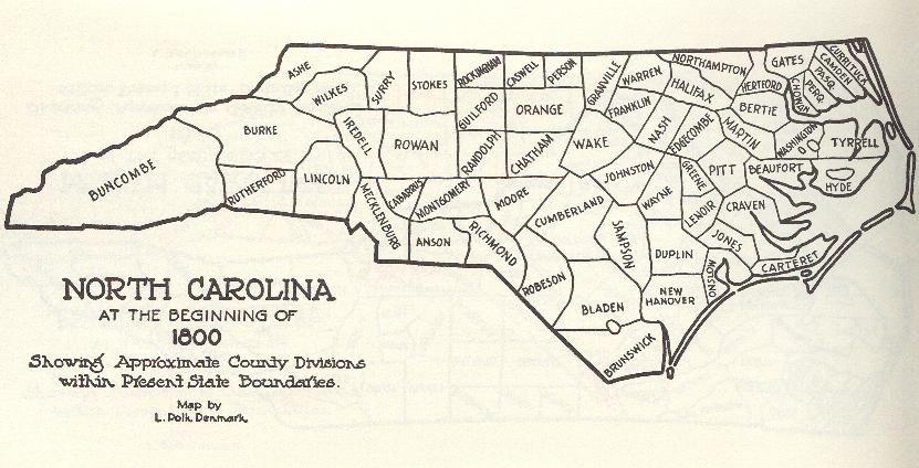 Map of the North Carolina Counties in 1800. |