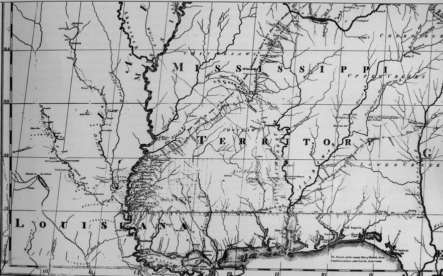 of the Mississippi Territory shows Washington Co. northeast of Mobile Bay and